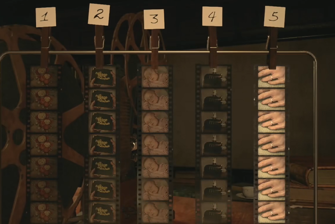 11、返回木偶室,用镊子拿出假人嘴里的胶片,前往电梯旁的放映室,以如图所示摆放好即可。