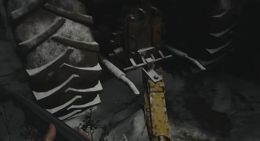3、打开旁边的密码箱获得一把枪和千斤顶,走出大门后将拦路的拖拉机用千斤顶顶起来后爬过去。