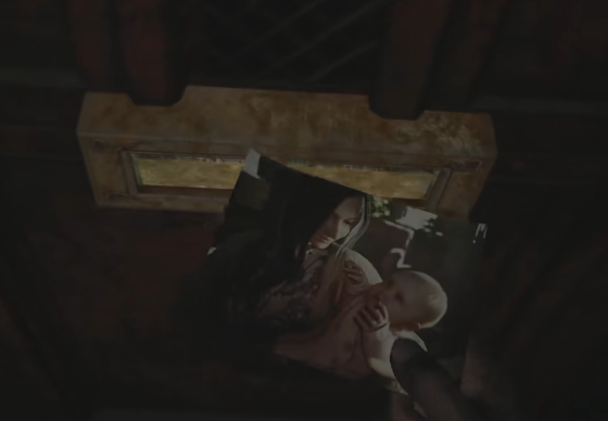 7、穿过树林后在铁门对面看到了米娅的身影,跟随其向前走,经过坟墓后,用照片开启大门,然后乘坐电梯来到大厅。