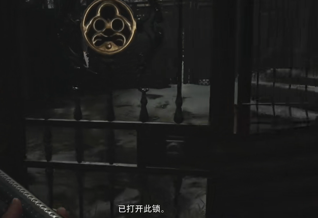 4、然后直走再右转,沿路走到尽头的铁门处,用钥匙打开进去。