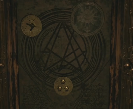 13、进入旁边的通道里,然后将门上的雕像依次换成如图即可。