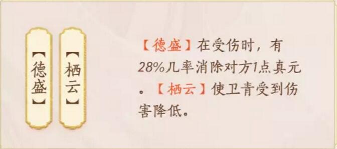 卫青有很强的主动保护能力,在作战时,能够有效降低敌方攻击,效果显著,适合群体和pve。