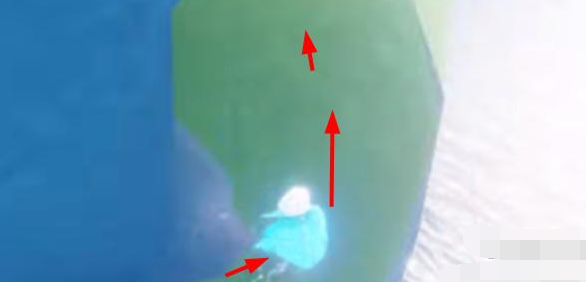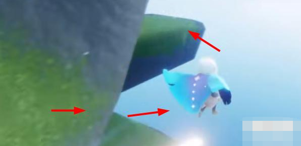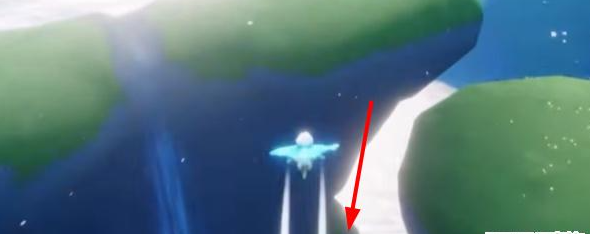 2、我们到浮岛底部降落,如图所示。