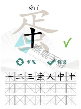 1、首先将“蛋”进行拆分看看有哪些字组成的,可以找到(一、二、三、亖、人、中、十)。