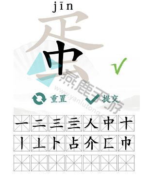 2、然后观察拆开的部分寻找笔画简单的生僻字,可以找到(丨、丄、卜、占、介、匚、巾)。
