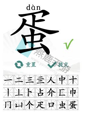 根据所给字“蛋”从中找出21个常见字(一、二、三、亖、人、中、十、丨、丄、卜、占、介、匚、巾、冂、凵、个、疋、口、虫、蛋)