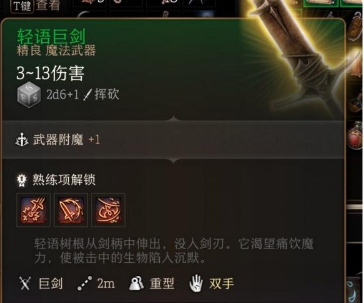 博德之门3轻语武器做哪个厉害?博德之门3里面很多人呢都想要获取不错的轻语武器的呢,那么在选择的时候比较的纠结了,大家可以选择这个轻语巨剑,还是比较的好用的,不会的话下面一起来看看吧!