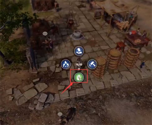 4、火烧结束,再鼠标点击架子,出现四个选项,选择『运劲』这个动作。