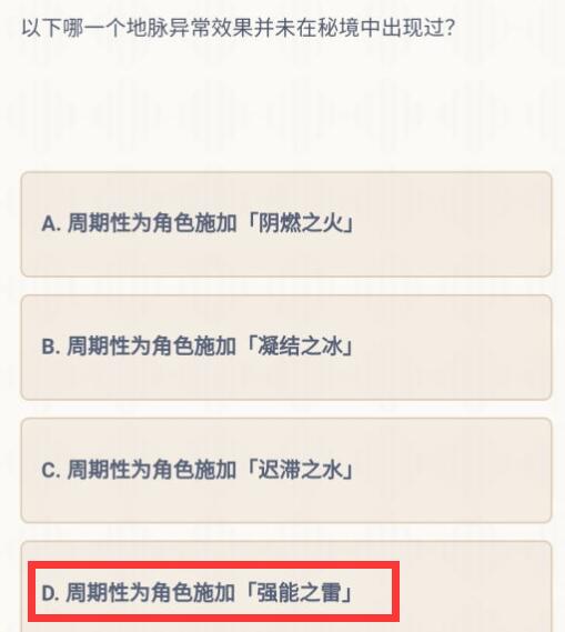 原神中派蒙有一题:以下哪一个地脉异常效果并未在秘境中出现过?下面小编给大家带来原神秘境里面出现过的效果,一起看吧。