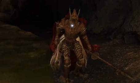 1、这个BOSS非常巨大,武器是一把弯曲的大剑,使用冰元素攻击。