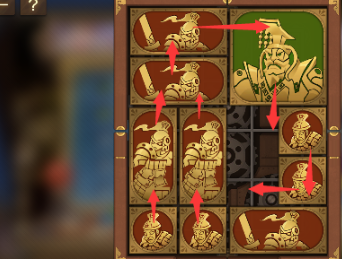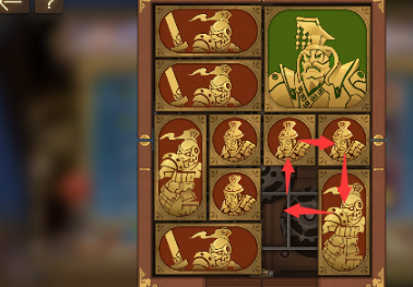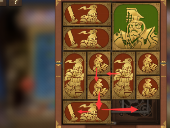 6、最后将左下角的长方形竖直摆列为长方形,这样将军就可以逃出来了。