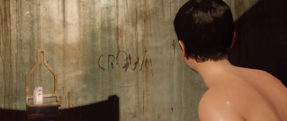 5、之后前去洗浴,在此见到灵体出现并写下crown后消失。