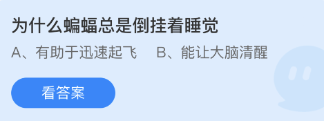 10月26日的蚂蚁庄园小课堂其中一个问题是:为什么蝙蝠总是倒挂着睡觉?不少小伙伴还不知道问题答案,那么下面小编就为大家带来了蚂蚁庄园10月26日正确答案,感兴趣的快来看看吧。