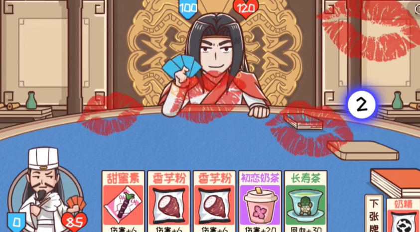 4、将周瑜的嘴唇拖拽至香芋奶茶合成香芋啵啵打出。