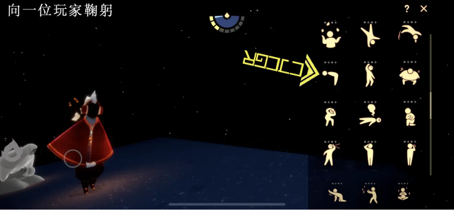 和游戏中的一位玩家,点击下图的鞠躬动作即可。
