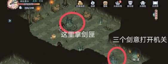 3、拿三个剑意之后走到最里面的位置,先在下图这个位置打开开关;