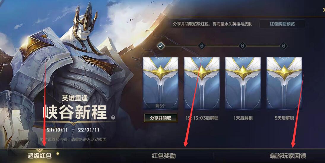 这次的峡谷新程活动主要分为三个部分,在游戏界面底部可以看到;